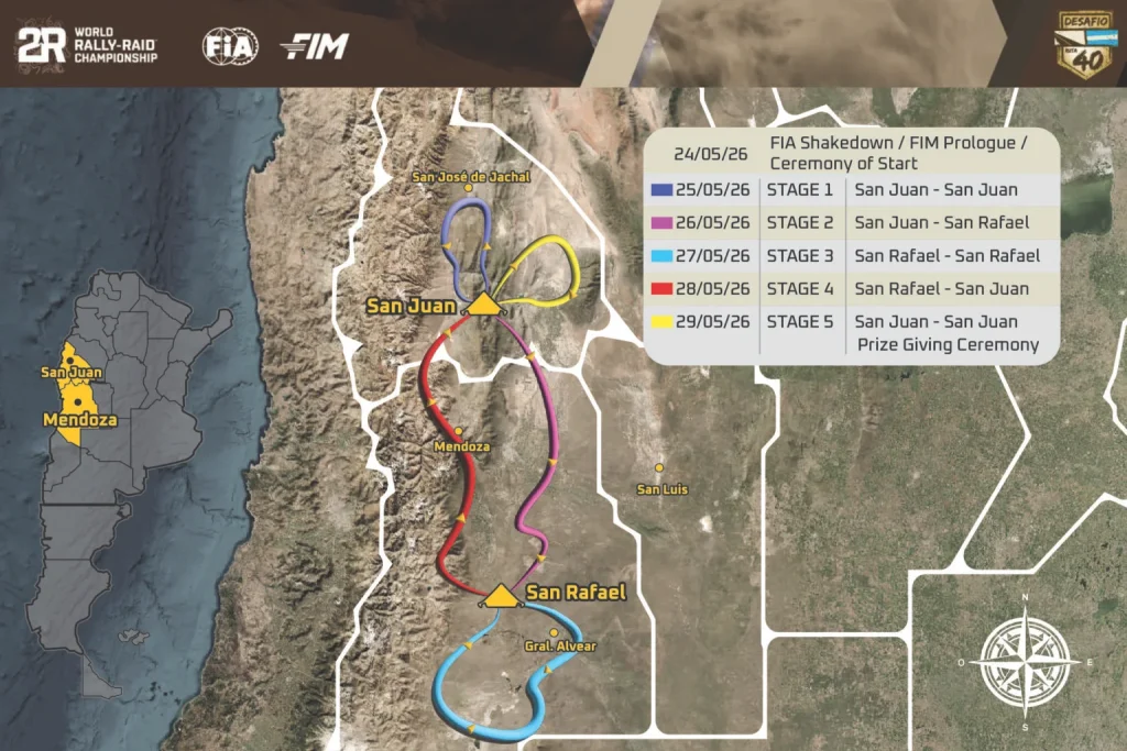 La organización del Desafío Ruta 40 repasa el recorrido de la tercera fecha del Campeonato Mundial de Rally Raid, que se disputará en Argentina. La competencia insignia del cross country prepara su 13° edición, que se disputará del 24 al 29 de mayo por San Juan, San Rafael (Mendoza) y de regreso a San Juan.