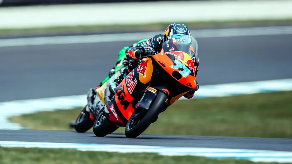 Por un lado, Perrone no pudo encontrar una buena puesta a punto en la KTM RC250GP del Red Bull Tech3 y terminó marcando un tiempo de 1m36s379 que lo ubicó 18° en el clasificador general oficial. El «Coyote» viene de no correr la Final del GP de Indonesia por una caída sufrida durante las prácticas.