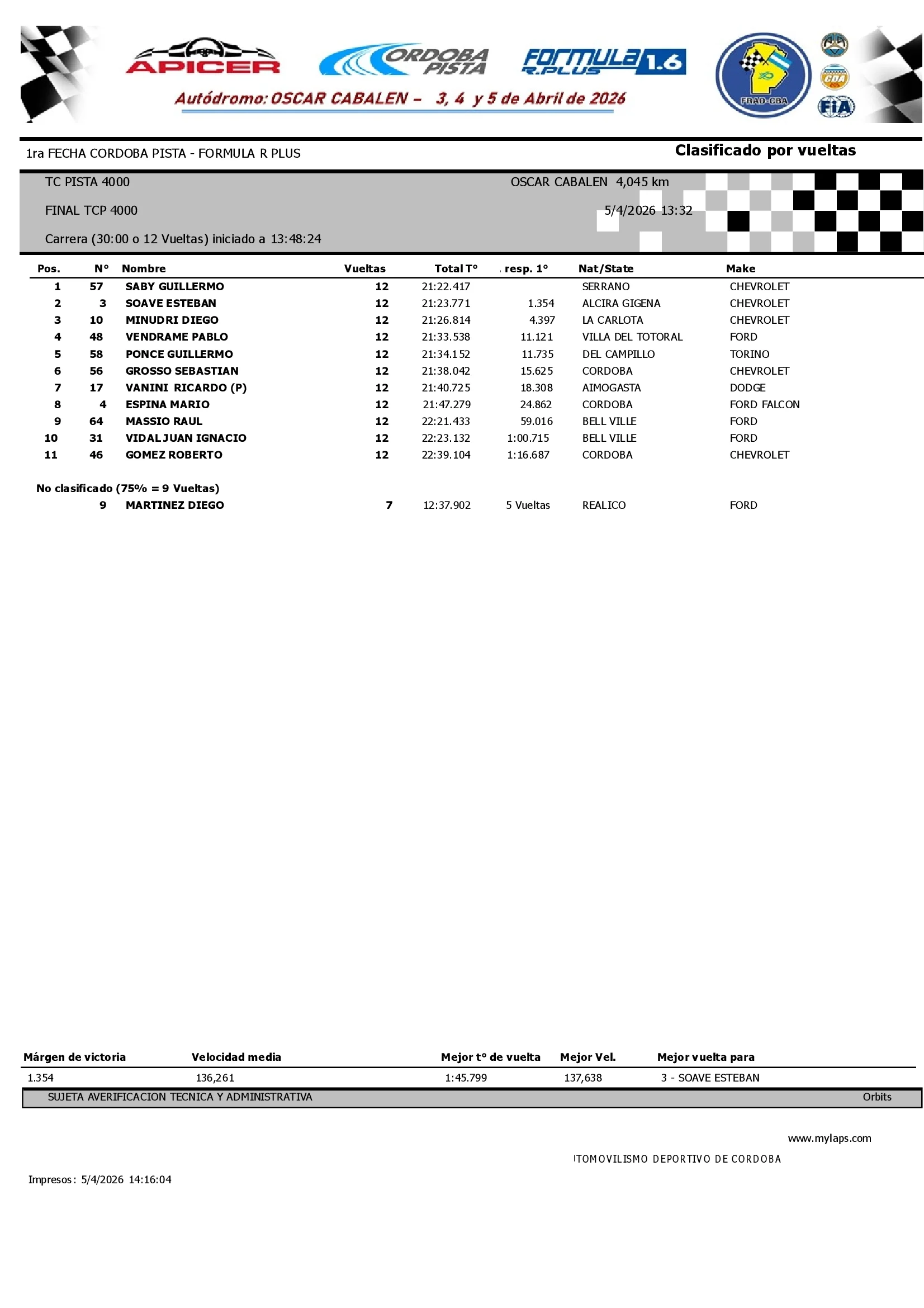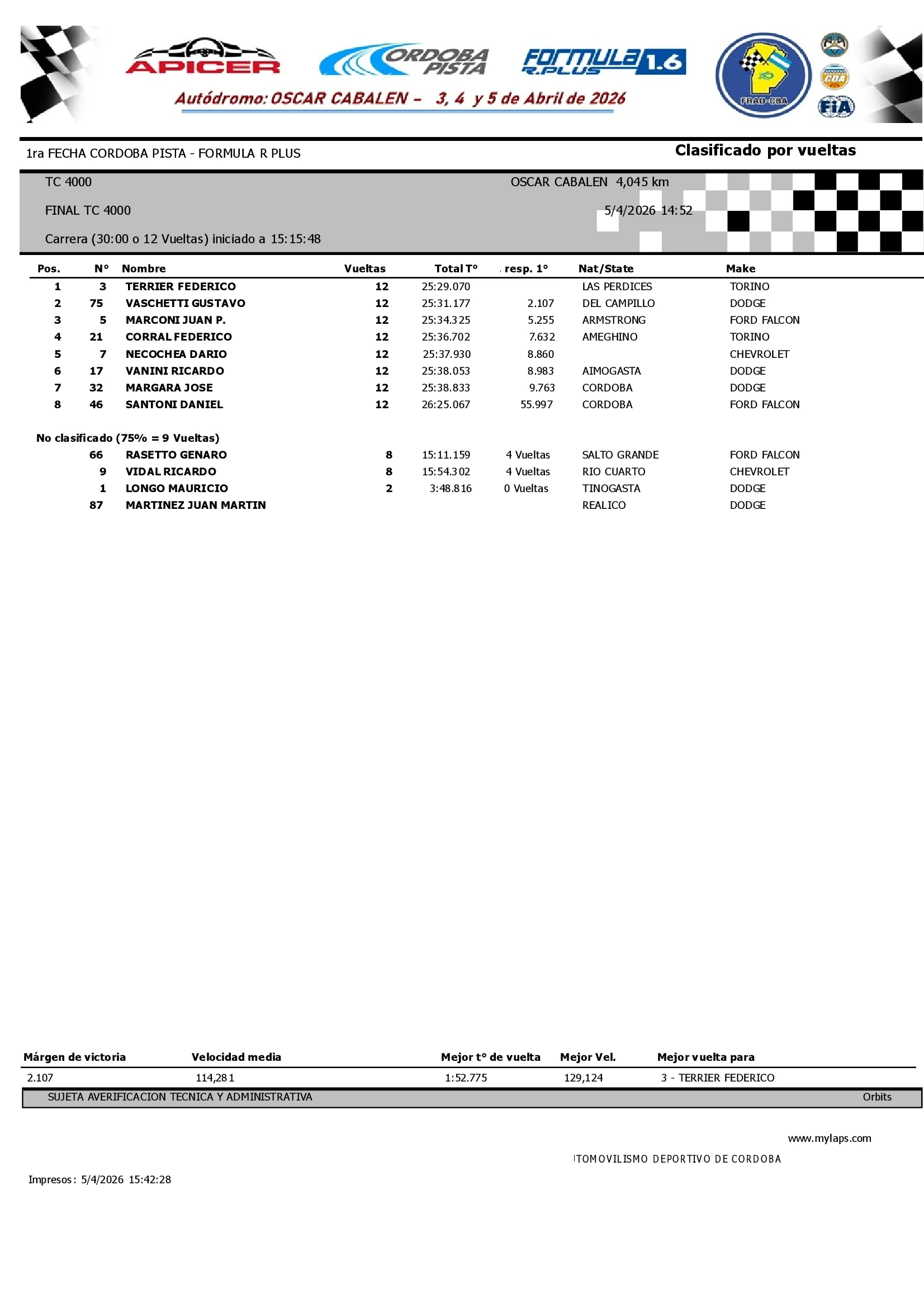 Resultados Carrera Final TCP4000