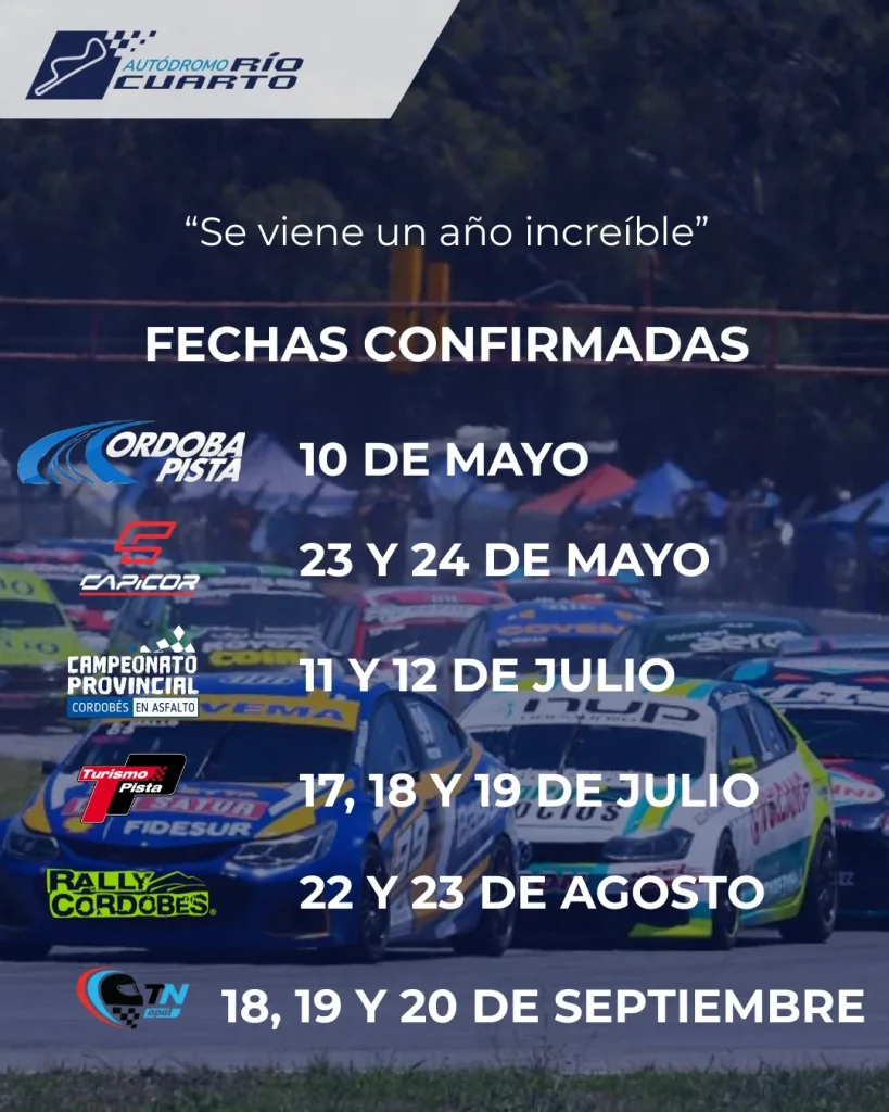 En medio de un importante proceso de transformación impulsado por el Gobierno de la Provincia de Córdoba, el Autódromo Parque Ciudad de Río Cuarto comienza a delinear su calendario con las primeras competencias confirmadas para los próximos meses.