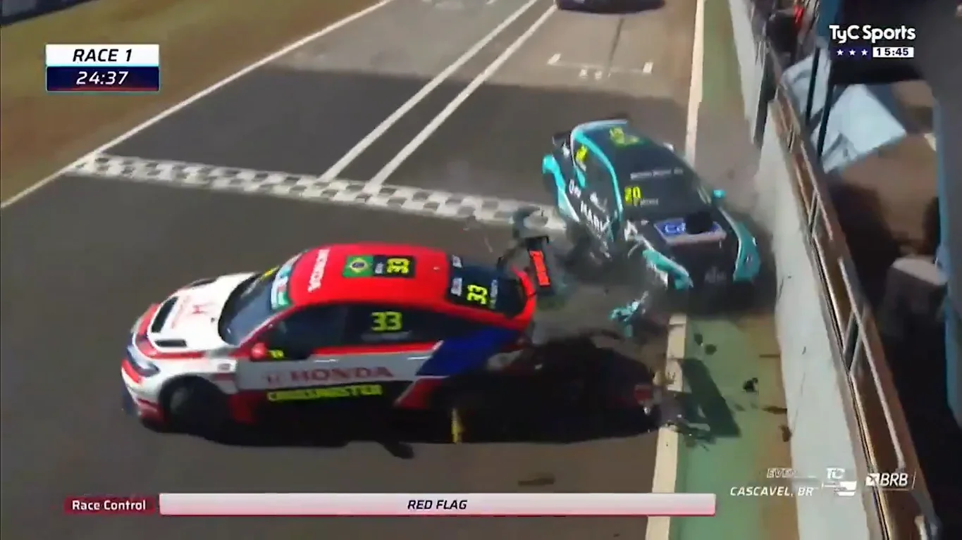 El TCR South America debió cancelar la primera competencia del fin de semana luego de un fortísimo accidente que involucró a Nelson Piquet Jr. (Honda), que largaba desde la «pole position», y a Bruno Massa (Cupra).