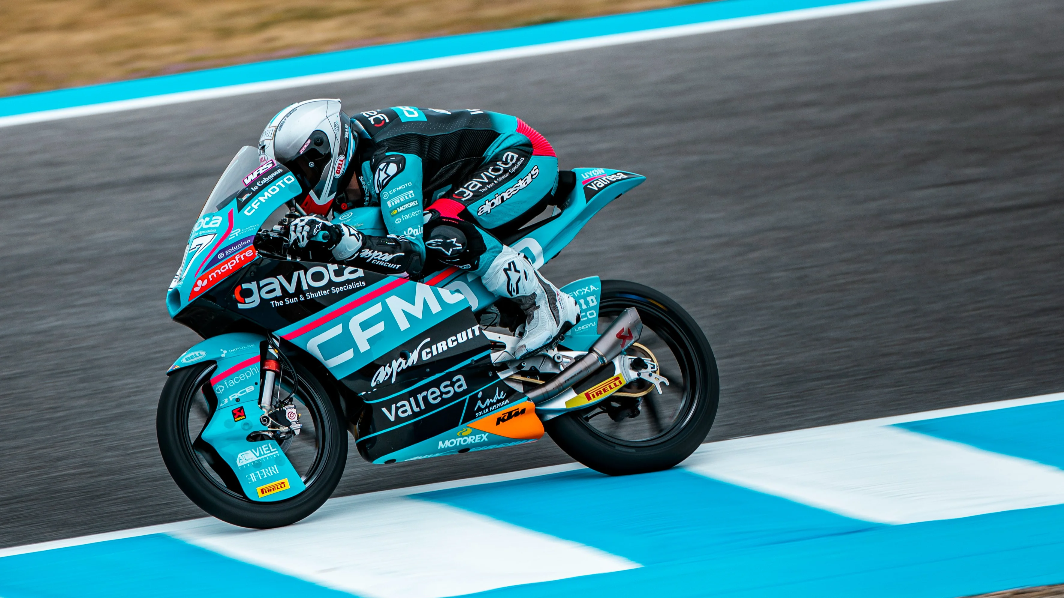 El mejor tiempo fue marcado por Máximo Quiles luego de girar en 1m44s078 sobre la pista española, seguido por su coterráneo David Muñoz (los dos con KTM), a 0s041 de diferencia. A 0s247, Perrone quedó tercero por delante de Matteo Bertelle, David Almansa (ambos con KTM), Adrián Fernández (Honda), Brian Uriarte, Adrián Cruces, Álvaro Carpe (los tres con KTM) y Morelli.